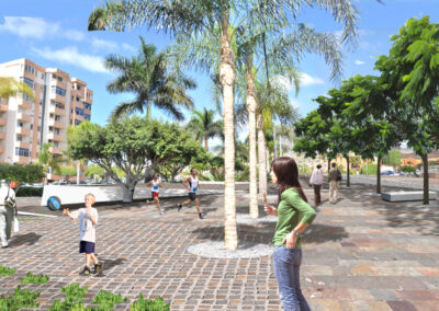 En las áreas de estancia se incluyen los NUEVOS USOS que complementan al boulevard como juegos de niños, gimnasia para adultos y un gran espacio para eventos.