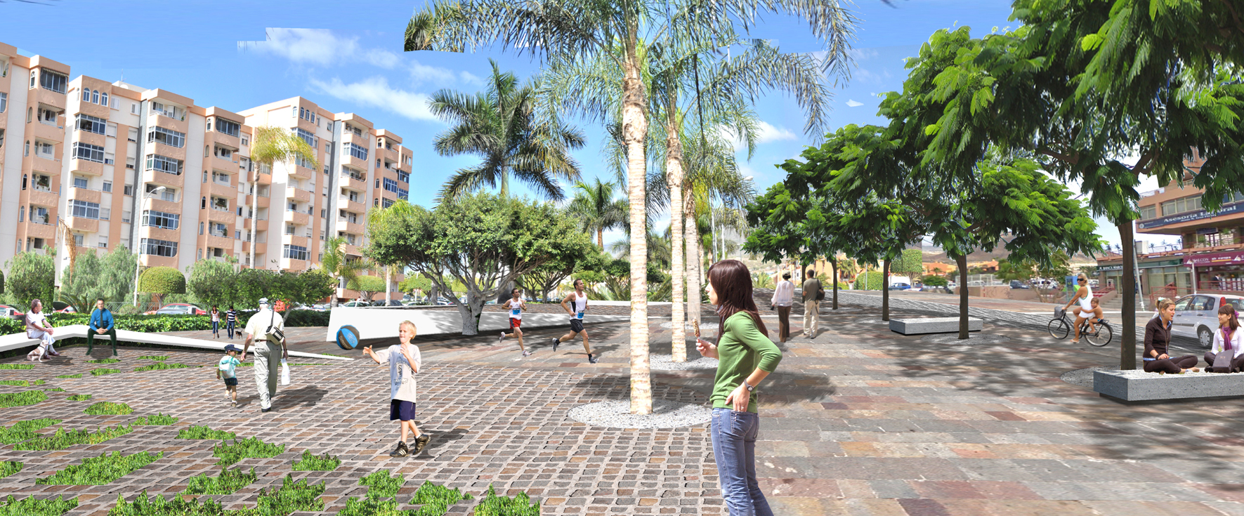 Estas zonas se ejecutan con adoquín colocado con junta abierta y se caracterizan por que existe VEGETACION, SOMBRA y MOBILIARIO adecuado a la actividad de cada espacio.
